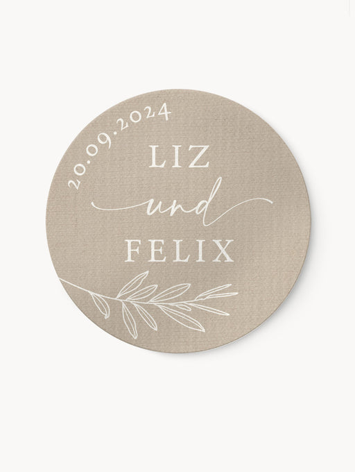 Vollständige Details anzeigenPersonalisierte Aufkleber zur Hochzeit Alma Beige | ⌀ 4cm