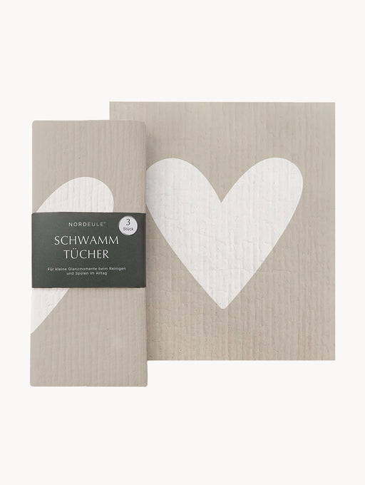 Unsere Schwammtücher mit Herz-Motiv im 3er Set in Beige und Weiß bringen Liebe und Stil in Deine Küche. Die saugfähigen Spültücher sind ideal zum R...