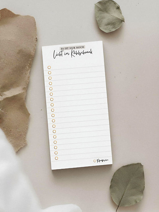 Vollständige Details anzeigenEinkaufsliste Nur noch Licht im Kühlschrank Notizblock | DIN lang
